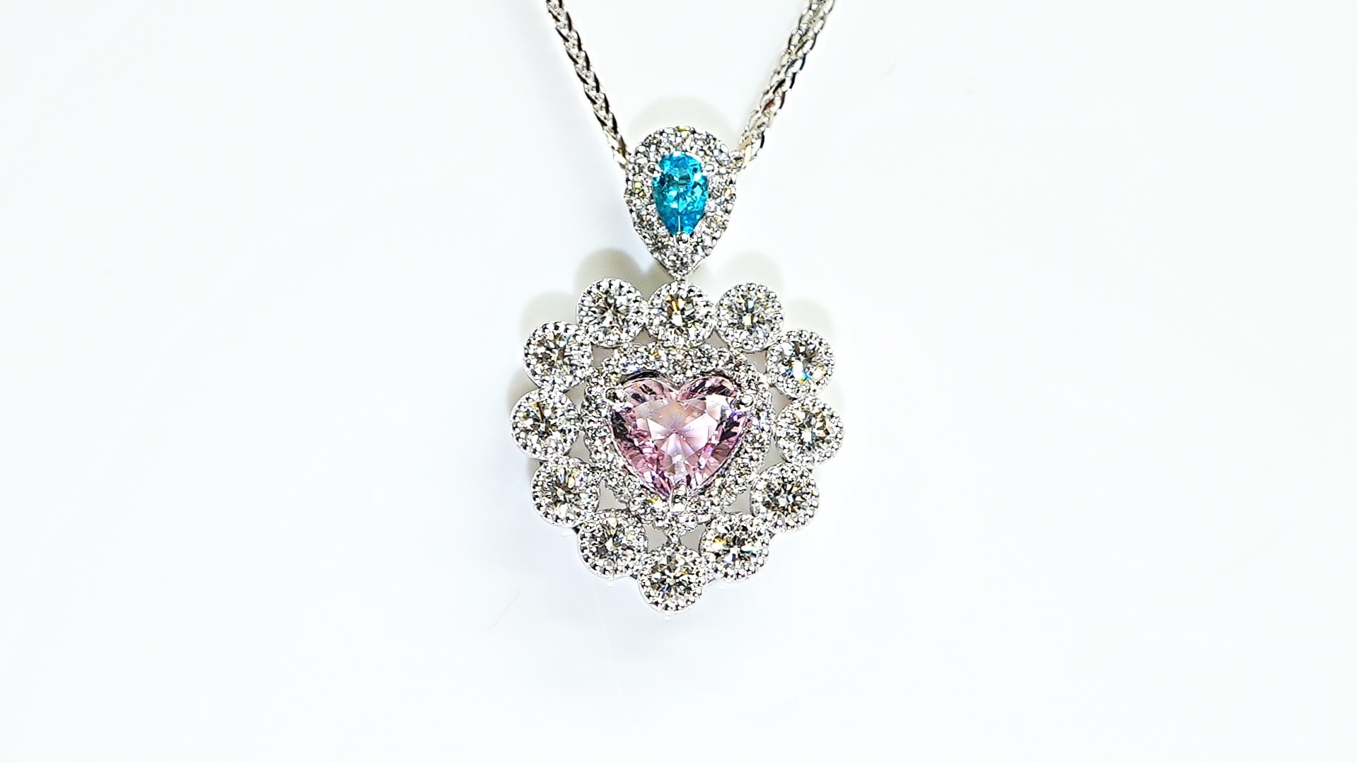 パライバトルマリン & ピンクダイヤモンド & パラサイトペリドット